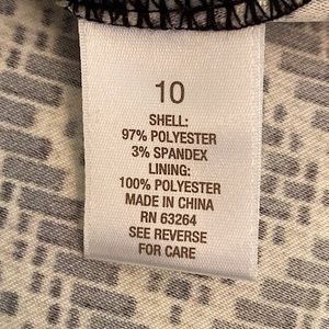 DB Signature Darby Geometric Black Tan Scoop Neck Sleeveless MIDI Dress has a hidden back zipper. Fit & Flare, dress has stretch.