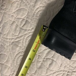 Talbots ‘Tish’ genuine leather and suede mid calf boots have silky faux fur foldable cuff. Wear up or down. Half zipper. Lug soles. Stationary buckle detail. Perfect condition. Never worn. Color black. Size 8.5. Measurements in pics.