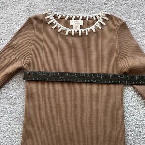 Camila Coelho Ribbed Knit Sweater Womens XS Brown Trim Neck Pullover