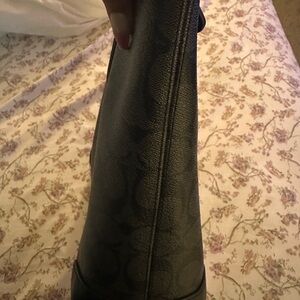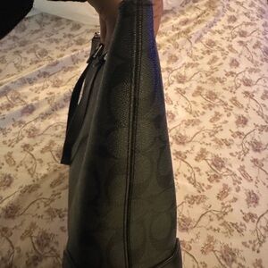 Sophisticated Coach tote with signature pattern. Dark gray color. Ideal for daily use.