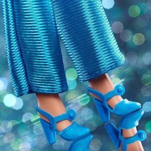 Debuting in 1978, P.J. dazzled from the disco to the photoshoot. For this 45th anniversary collectible reproduction, Fashion Photo P.J. is dressed in a metallic silver body suit with azure pants and a layered sheer tricolor overskirt and comes with two additional skirts.