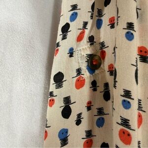 Maeve Anthropologie Pintuck Button Down Top Hat Print Tunic Roll Up Sleeve Sz 8