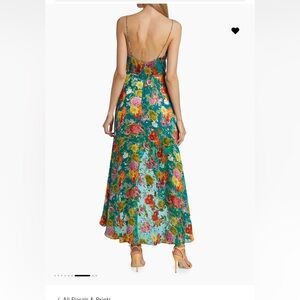 Bright floral design on a teal backdrop. High low hem for a chic look. Ideal for special occasions. Worn once for 2 hours, excellent condition, like new. Still has tags on it that I forgot to take off.