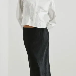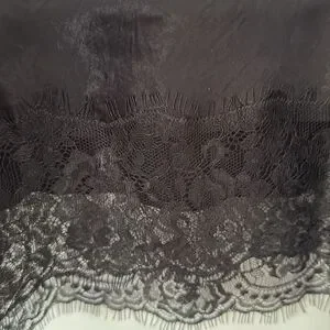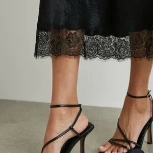 Made from shiny crinkle satin, this black skirt looks good with just about anything. It sways and shines as you move, but stays secure thanks to its hidden elastic waistband. A lace trim on the bottom takes this style to the next level.