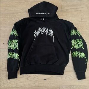 Bold Diesel hoodie in black. Features neon green graphic designs on sleeves and chest. Ideal for a standout casual style.