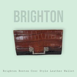 Brighton Boston Black and Brown Croc Pattern leather wallet / organizer in very good condition.