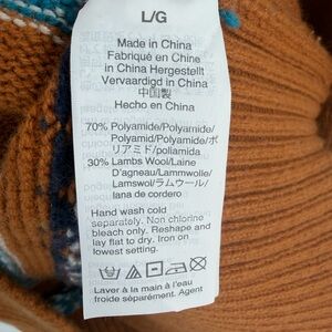 J.Crew women’s rollneck fair isle lambs wool sweater burnt orange turquoise sz L