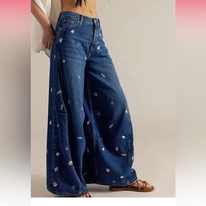 We The Free Dark Blue Embroidered Flare Jeans