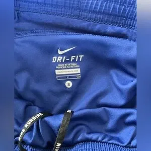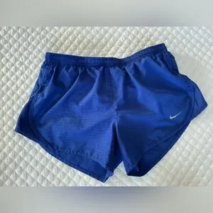 -Nike blue dry-fit athletic running shorts. Blue . Build in underwear. Back zip pocket . Drawstring waistband