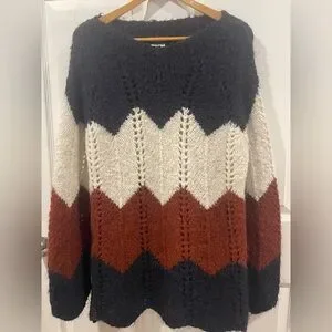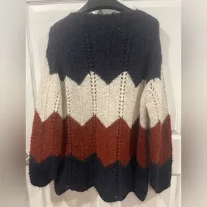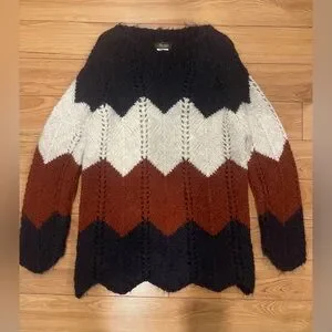 Iperico wool blend Chevron Knit chunky pullover Sweater long sleeves made Italie