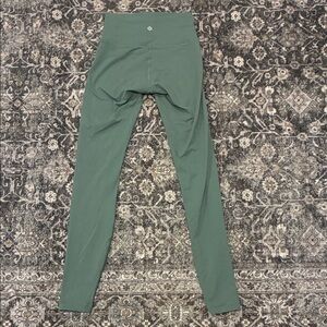 Stylish green high-waisted leggings. Perfect for workouts or casual wear.