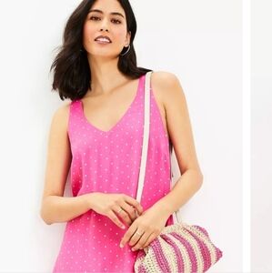 LOFT Ann Taylor Pink Dotted Criss Cross Back Swing Dress Size XS NWOT Slip Mini