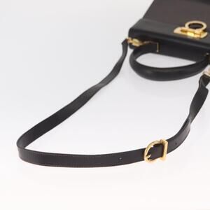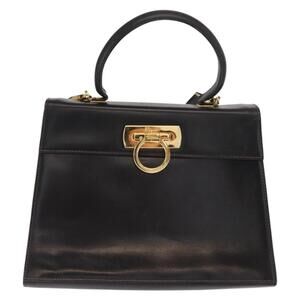 Salvatore Ferragamo Gancini Hand Bag Leather 2way Black Gold Auth ka1065