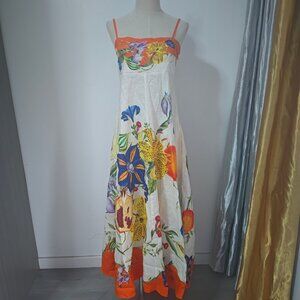 Alemais Erames floral pattern square-necked linen halter dress