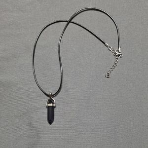 This elegant black with a hint of purple pendant necklace adds a touch of sophistication to any outfit. Perfect for any occasion.