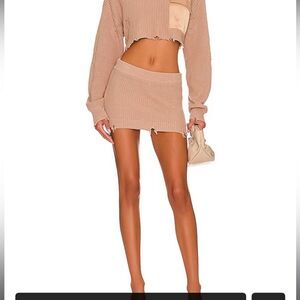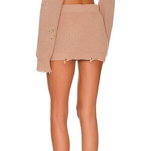 Ser.o.ya Seroya Alora Mini Skirt in Natural. Comfy Sweater Knit Distressed Material. Size Small. New with tags!
