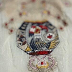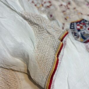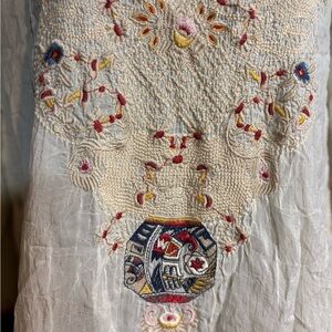 Colors White/Ivory with multicolored embroidery (red, blue, yellow accents)