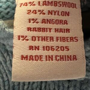 This chunky knit blue wool snowflake sweater from Sundance features an ivory white intarsia snowflake and geometric trim at the hem and cuffs, a hood, v-neckline, ribbed trim, and rolled detailing at the hem and cuffs. This piece is very similar to the Sundance Snowflake Sweater worn by Lorelai / auren Graham on Gilmore Girls. 74% lambswool, 24% nylon, 1% angora rabbit hair, 1% other fibers