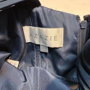 Azazie A-line gown in navy blue chiffon pleated crisscross bodice 16 xl