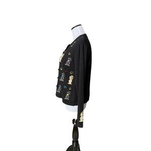 Vintage Berek Cat Embroidered Beaded Cardigan Sweater Size M Black Novelty Artsy