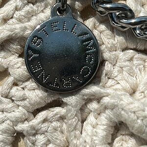 Elegant crochet design. Features chain strap. Perfect for casual outings.