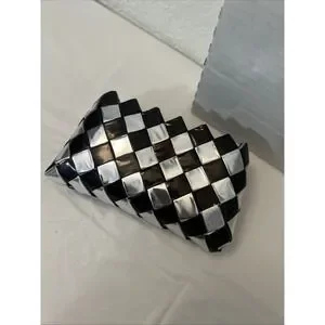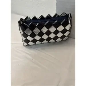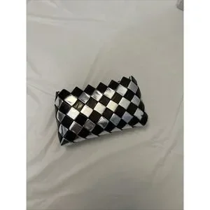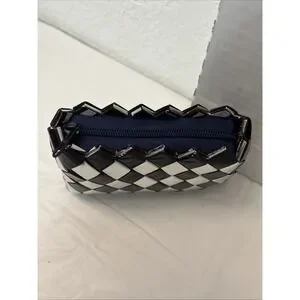 This Candy Wrapper Zippered Wallet Coin Purse in black and silver features a geometric pattern with a metallic finish, giving it a stylish and trendy look. The rectangular shape and zip closure make it practical for travel or casual use. The small size and coin purse accessory make it perfect for storing coins and small items. Made of lightweight and eco-friendly plastic, this unisex wallet is a must-have for anyone looking for a chic and functional accessory.