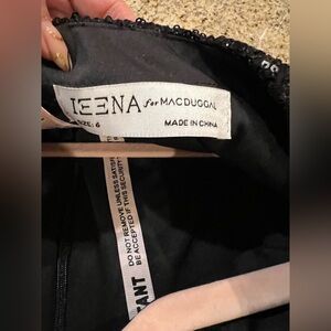 Ieena for Mac Duggal Black Sequin Knotted Long Sleeve Midi Dress Size 6 NWT