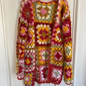 Handmade Colorful Crochet Patchwork Granny Square Cardigan