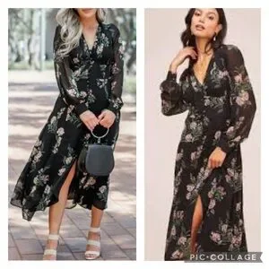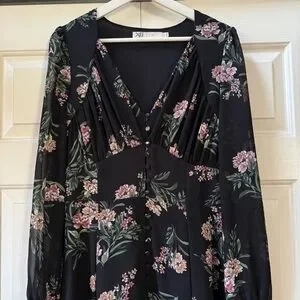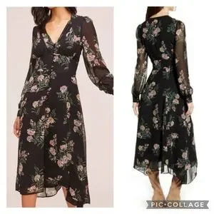 ASTR the label sheer floral v-neck button front long sleeve midi dress size M