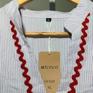 utcoco Summer Beach Boho Striped Flutter 3/4 Sleeve A Line Flowy Long Dress.
