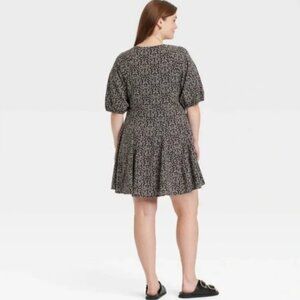 Universal Thread Black White Floral Mini Above Knee Elbow Sleeve Dress NWT 1X