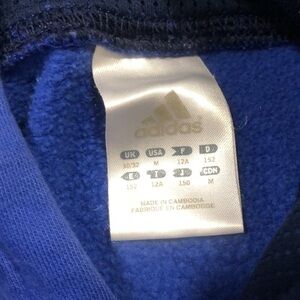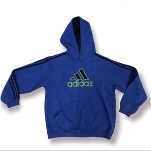 Kids adidas hoodie, used and worn, also faded in color. “Adidas” is stitched and has a small loose thread! Item has a lot of life left! Hood area is also in great condition!
