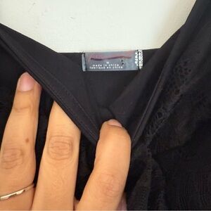 It’s is a very unique jumpsuit. It has lace across the chest. Please see pictures for details come from a smoke free and pet free home.