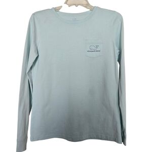 This Vineyard Vines long sleeve shirt features a charming whale design. The soft blue color adds a playful touch to any outfit.
