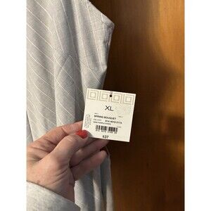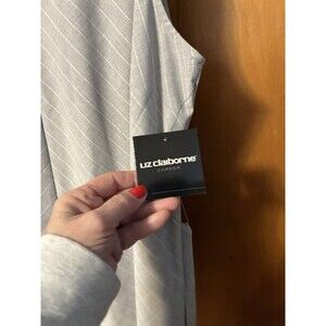The Liz Claiborne Spring Bouquet Sleeveless Belted Career Top in XL is a stylish blouse perfect for the spring season. Featuring a striking gray-purple striped pattern, this top is designed for women with a regular size fit. The sleeveless design, crew neckline, and belted waist add a touch of sophistication to the blouse, making it a versatile and fashionable addition to any career wardrobe.