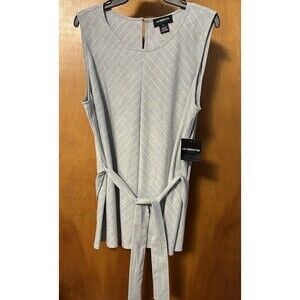 LIZ CLAIBORNE Spring Bouquet Sleeveless Belted Career Top XL Gray Purple Stripe