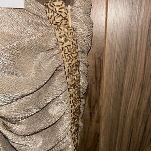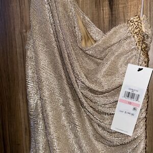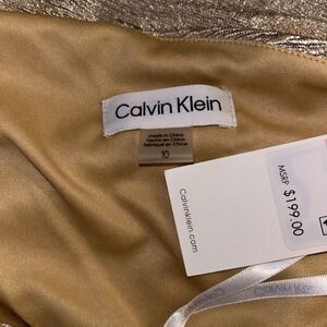 SIZE 10 Calvin Klein One Shoulder Metallic Beaded Champagne Gold Gown, NWT