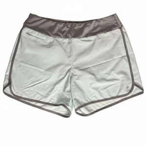 Hang Ten active shorts. Women’s size Large. Light blue and gray color. UV protection with a UPF 50+ rating. Small hidden zipper pocket. Good used condition.