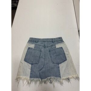 Free People Blue Denim Patchwork Frayed Hem Mini Skirt Size 4