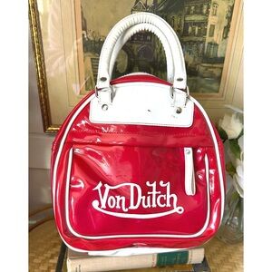 Von Dutch Vintage Y2K Red Patent Bowling Bag Purse White Trim
