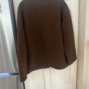 Chic brown shearling jacket with stylish toggle closures. Cozy and fashionable for cool weather. New with tags retail price $268