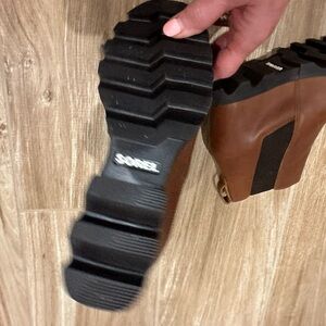 Sorel Women's Joan of Arctic Ankle Wedge III Chelsea boots in Brown Leather SZ 7