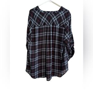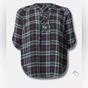 Torrid Black and Pink Plaid Lace-Up Sheer Blouse