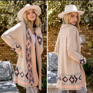 Boho Aztec Inspired Print Open Cardigan