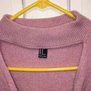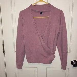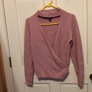 Chic dusty rose or mauve sweater with a wrap design. Ribbed Collar. Super Soft and comfortable. Ideal for layering. smoke/pet free home. great condition!