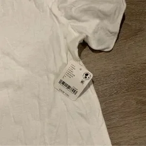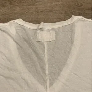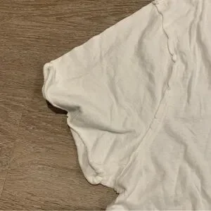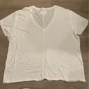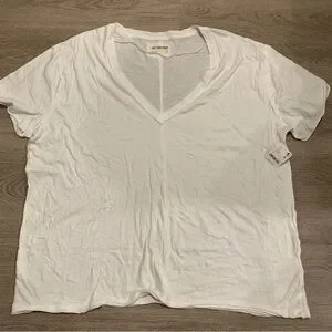 We the Free, Free People white t-shirt. Short sleeve with v-neckline. 100% cotton. Exposed seems and raw hems style. Size large. NWT, new with tags.