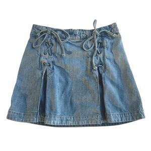 Free People Y2K Women’s Blue Pleated Flirty Lace-Up Denim Mini Jean Skirt Size 6
