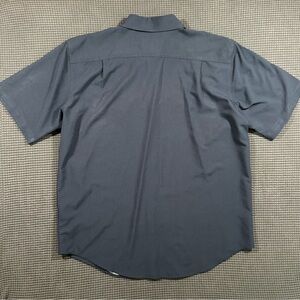 Orvis Mens Navy Blue Short Sleeve Button Down Shirt Large Polyester Utility