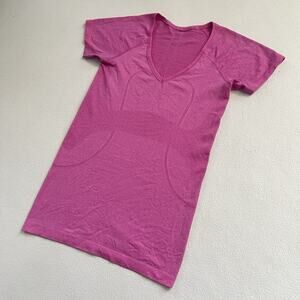 Lululemon Women Heathered Zing Pink Light Swiftly Tech Short Sleeve V-Neck Top