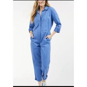 OUTERKNOWN Station Jumpsuit Womens large blue Long Sleeve One Piece Linen NEW